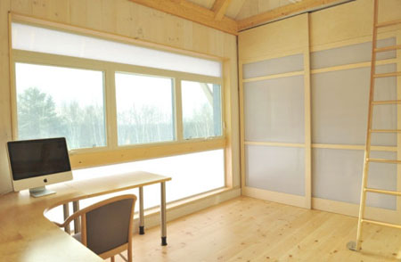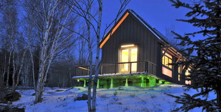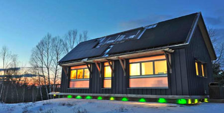 Energy efficient homes are now getting more and more each day. The Brightbuilt Barn by Kaplan Thompson is a super energy efficient prefab design that is located in Rockwood, Maine. The LED light skirt that lets you know if a structure id generating more or less energy than it is using is probably one of the most interesting green feature of this building. Since the LED light skirt determines the energy production versus usage of the house, it can be determined thru its colors. If the skirt turns green it means that the building is using less energy than it produces, when it turns yellow it is breakeven, and when it turns red, the building uses energy more than what is it producing. Pretty simple and easy to understand that helps a lot.