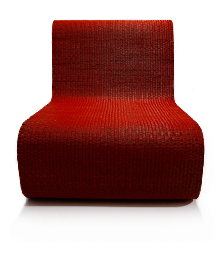 This is a fine lounge designed with rhythm and tradition. Mat, a traditional oriental material that is breathable and sustainable, is perfectly transformed into a 3 dimensional lounge. Layers of smooth mat are dyed red, wrapped upon a white lounge body. Sections of the mat can still be seen in the silhouette, showing the beauty of the material.
