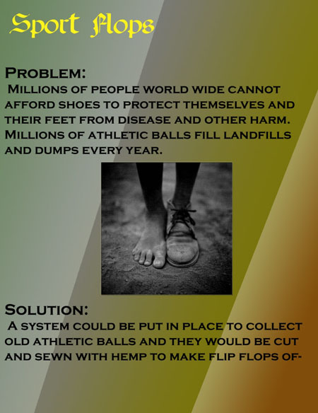 Sports groups and enthusiasts discard their sporting goods like their balls regularly and these goods add to the growth of our landfills. On the other side of the story, many of our little brothers and sisters are suffering from severe poverty that even a single pair of shoe or slippers, these poor individuals do not have the chance to buy. To solve both problem in one single step, Justin May-West has designed the Sport Flops. This eco-friendly flip-flop design makes use of those discarded sports ball. With a little assembly and some few tools, the sport flops is made. Having this will give chance to our poor brothers and sister to wear slippers and keep their feet safe from possible harm. In addition, this project will surely minimize the growth of landfill.