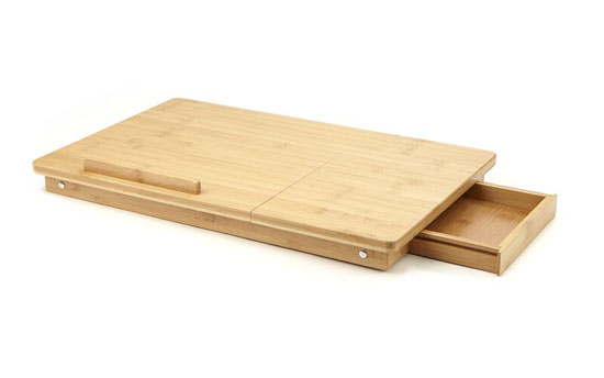 Busch Eco-Friendly Bamboo Adjustable Laptop Tray provides a convenient way for you to use your laptop. It also has a sliding drawer to keep notes, pencils, and other essentials. The material is 100% natural bamboo wood, bamboo has been known as durable and lost-lasting material than any other type of wood. We really love the natural look of the finished product. You can also fold those legs and covert the tray into a flatbed tray when needed. [Click Here to order of Busch Bamboo Laptop Tray]