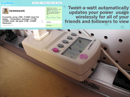 Monitoring your energy consumption is a good way in showing your love for the environment. However, doing this is not an easy task to do. Designers, Limor Fried, Adafruit Industries and Philipp Torrone had created the Tweet-a-Watt. The Tweet-a-Watt is a modified Kill-a-Watt power meter that will publish the energy usage of a particular household wirelessly through twitter. In this way, aside from getting you aware of your energy usage, the paperless method of the Greener Gadget first prize winner, Tweet-a-Watt have a lot to do in saving the environment. In addition to that, users will get a chance to compare their usage with their friends and followers on twitter.